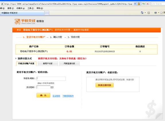 2)使用账户支付的用户必须是手机支付注册用户,可以享受手机支付电子劵和代金券。已经注册的用户直接输入手机号码和支付密码。