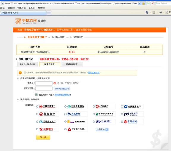 3)使用网银支付无用户限制,用户只需开通网银功能并选择移动手机支付方式即可。
