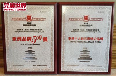 2014年9月9日,以“大文化、大商圈、大数据” 为主题的第9届亚洲品牌盛典在香港盛大举行,备受关注的2014亚洲品牌500强排行榜及各大奖项隆重揭晓。中国游戏企业领导品牌完美世界不仅再次入围“亚洲品牌500强”榜单,同时在相关奖项评比中再获突破,与韩国三星、日本本田、中国海运、生命人寿等亚洲知名企业一起,荣膺“亚洲十大最具影响力品牌奖”,并成为多年来获得“亚洲十大最具影响力品牌奖”的唯一游戏企业。