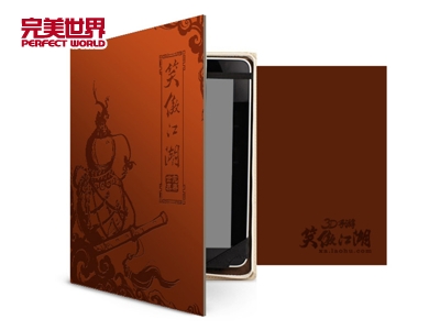 这次完美世界为大家提供两款精致的iPad保护壳,分别是以手游版《神魔大陆》和《笑傲江湖3D手游》为创作题材精心设计,整体感觉如古集秘录的沧桑厚重,犹如武侠世界的武功秘籍神秘,翻开又是时尚科技的iPad,一种古代与现代,古典与时尚,传统与科技的相互融合碰撞。