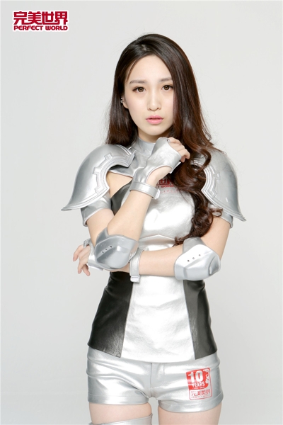 Hi,Girl。今年完美世界ShowGirl定妆照的清新出炉,完美世界ShowGirl参加本届ChinaJoy的服装也抢先曝光!完美世界ShowGirl服装整体贴身精致,使用未来感十足的亮银白色和黑色的搭配,配及胸口处完美世界Logo及左腿完美十周年的Logo。肩膀,手肘和手腕处的配以肩甲、肘甲和手套,即未来科幻又运动阳光,充分体现完美世界参展本届ChinaJoy的主题,又能彰显Showgirl青春健康活力无限的形象。