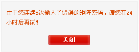在密保卡解绑/密保卡换卡任一功能中,如果用户在5分钟内连续5次输错密保卡信息(序列号或者三个矩阵数字),系统自动禁止该用户使用密保卡相关的网页功能(点击网页会给出提示信息),24小时后自动解除禁止。
