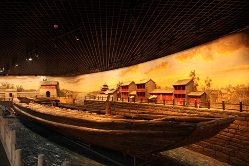 1956年梁山县出土明代漕船一艘,是迄今为止京杭大运河出土古船中年代和用途最明确、保存最完整的,距今已经有600多年的历史。大船全长21.8米,质地为南松木。船身呈柳叶形,排水量为32吨。主要装载粮草和物资等,根据专家测算,这艘船的运载量在当时属于中等,一次能运12吨至15吨的物资。