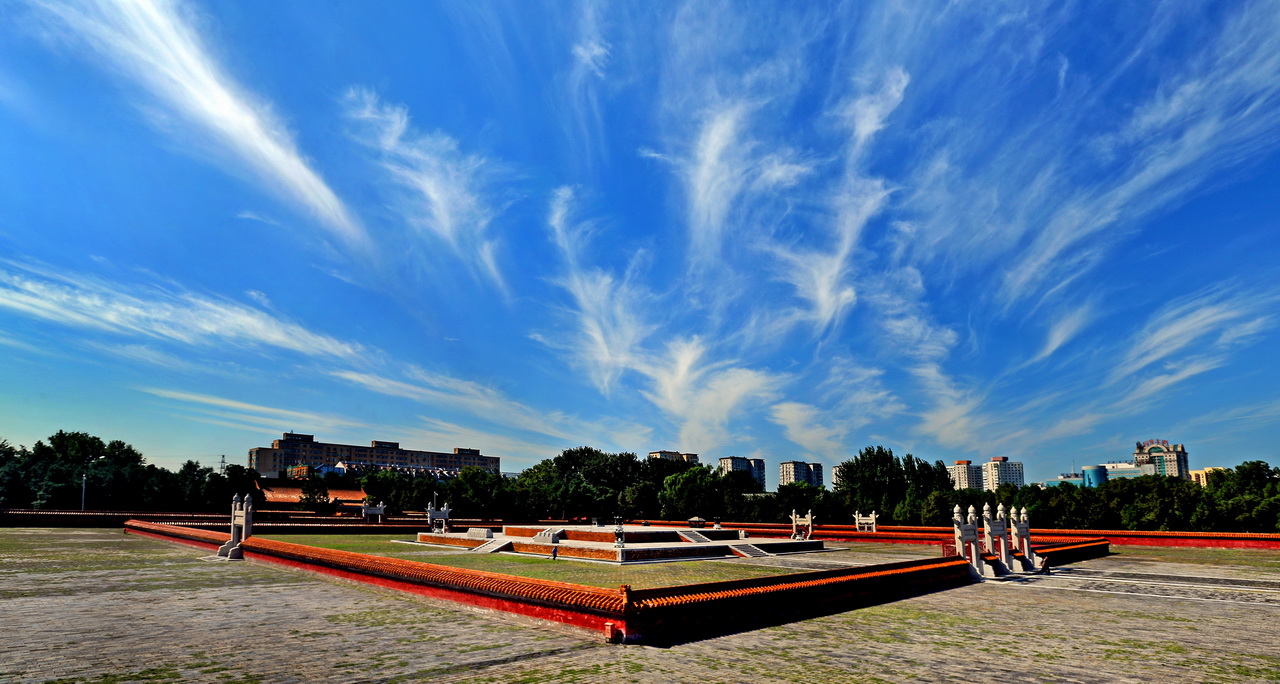 地坛又称方泽坛,是明、清两朝帝王祭祀“皇地祇”的场所,也是我国现存最大的祭地之坛。地坛始建于明代嘉靖九年(公元1530年),坛内总面积43.04公顷,呈方形,整个建筑从整体到局部都是遵照我国古代“天圆地方”、“天青地黄”、“天南地北”、“龙凤”、“乾坤”等传统和象征传说构思设计的。其中,最特殊的一点是地坛所有枋心彩绘图案均为双凤,而无龙和龙凤图案,这在我国的官式建筑中是罕见的。古时将龙与凤作为乾与坤的象征物代表阳与阴,这是建筑匠师们把古代的智慧,形象的体现于建筑艺术中的一种巧妙手法。地坛现存有方泽坛、皇祇室、宰牲亭、斋宫、神库、神马殿、钟楼等古建筑。