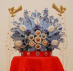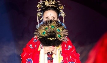 关键词:却扇、红绿钗钿礼衣