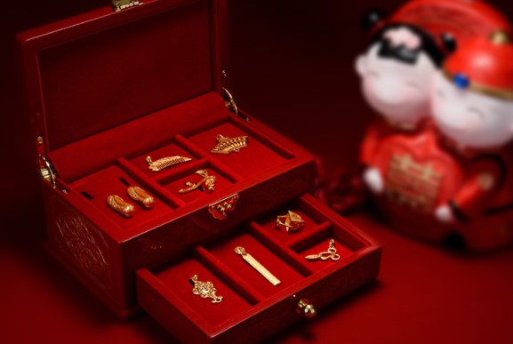 在中国婚嫁礼仪中,无论是聘礼,还是嫁妆,都要有几件黄金首饰压阵,不仅做服饰搭配,更是作为文化的载体、情感的寄托,传递新人对婚姻生活的美好期许,以及亲朋好友的真挚祝福。