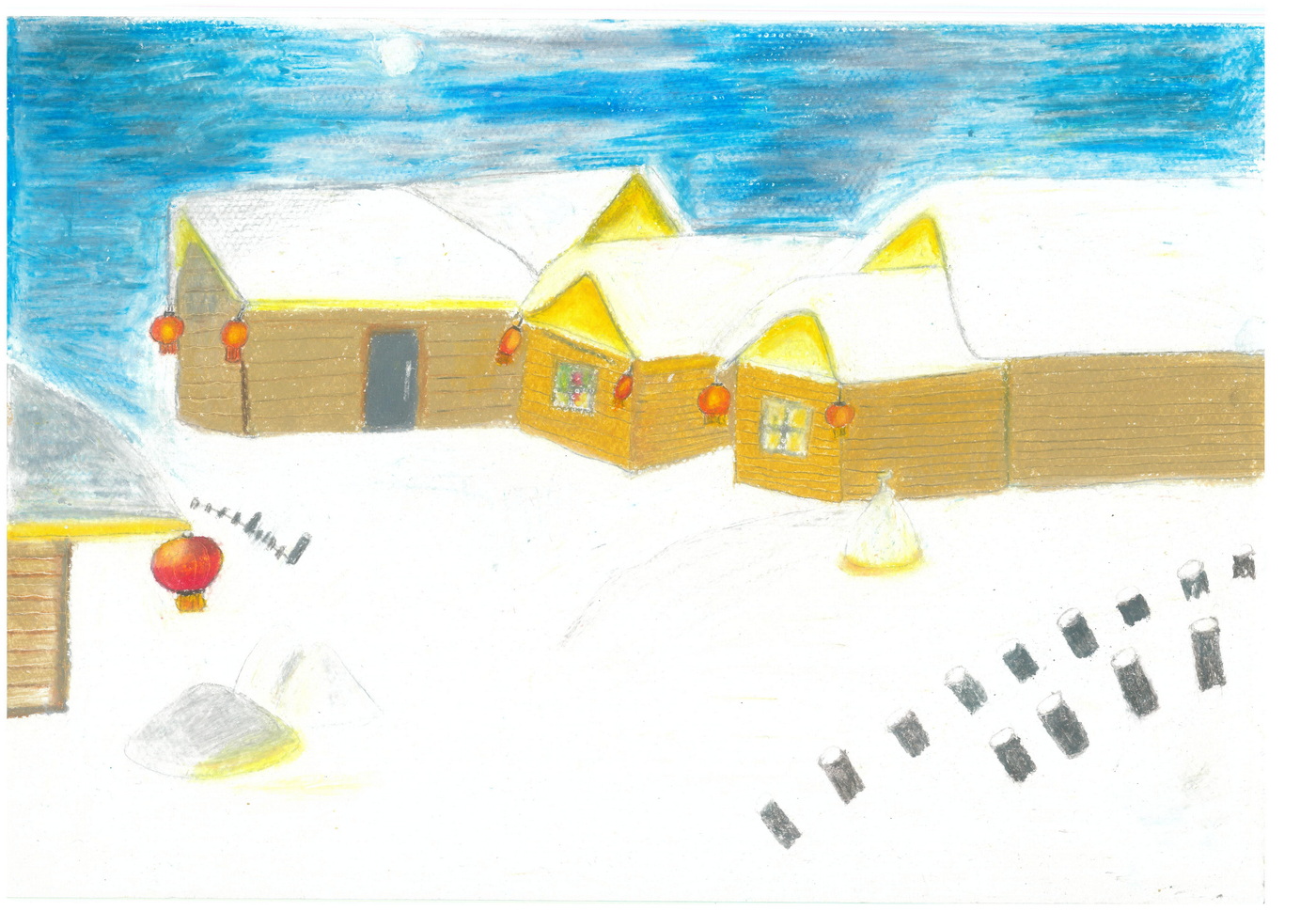 作品名称:《家乡的雪景》学生姓名:戴慧宁所在班级:三年级
