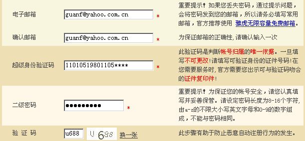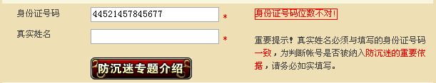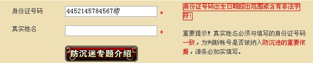 重要提示!真实姓名必须与填写的身份证号码一致,为判断帐号是否被纳入防沉迷的重要依据。