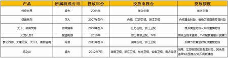 看看投放在电视台上的产品吧,除了游戏蜗牛整体投放策略导致的倾向性外,不关是巨人、搜狐、网易还是盛大,其投放在电视广告上的这些都是各家的核心营收产品,更准确的说,是各家已经取得市场成功,获得市场认可的招牌货。