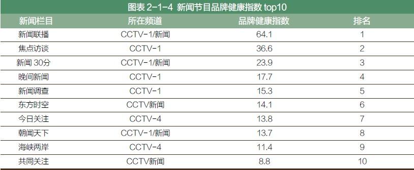 ◎CCTV-1、CCTV-新闻、CCTV-4、CCTV-2是新闻阵营的主要频道,其中CCTV-1、CCTV-新闻的优势尤为突出