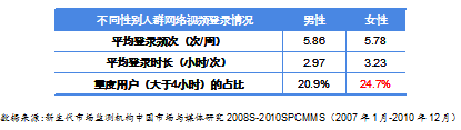 在线视频生活进入“她时代”:不仅如此,网络视频还深深影响着以“粉领”为代表的女性阶层。与男性相比,女性对电视剧更为热衷,这就使得她们在视频网站上花费更多的时间和精力,可以看到,每天上视频网站超过4小时的重度用户女性占比达到24.7%,高出男性该比例3.8%。成为在线视频的“深度用户”。