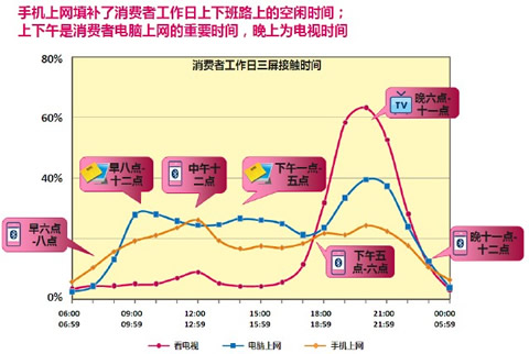 工作日,消费者利用上下班在交通工具上的碎片时间,通过手机上网、发微博、看电子书、玩网络游戏等,这些使用习惯都与PC互联网大相径庭。