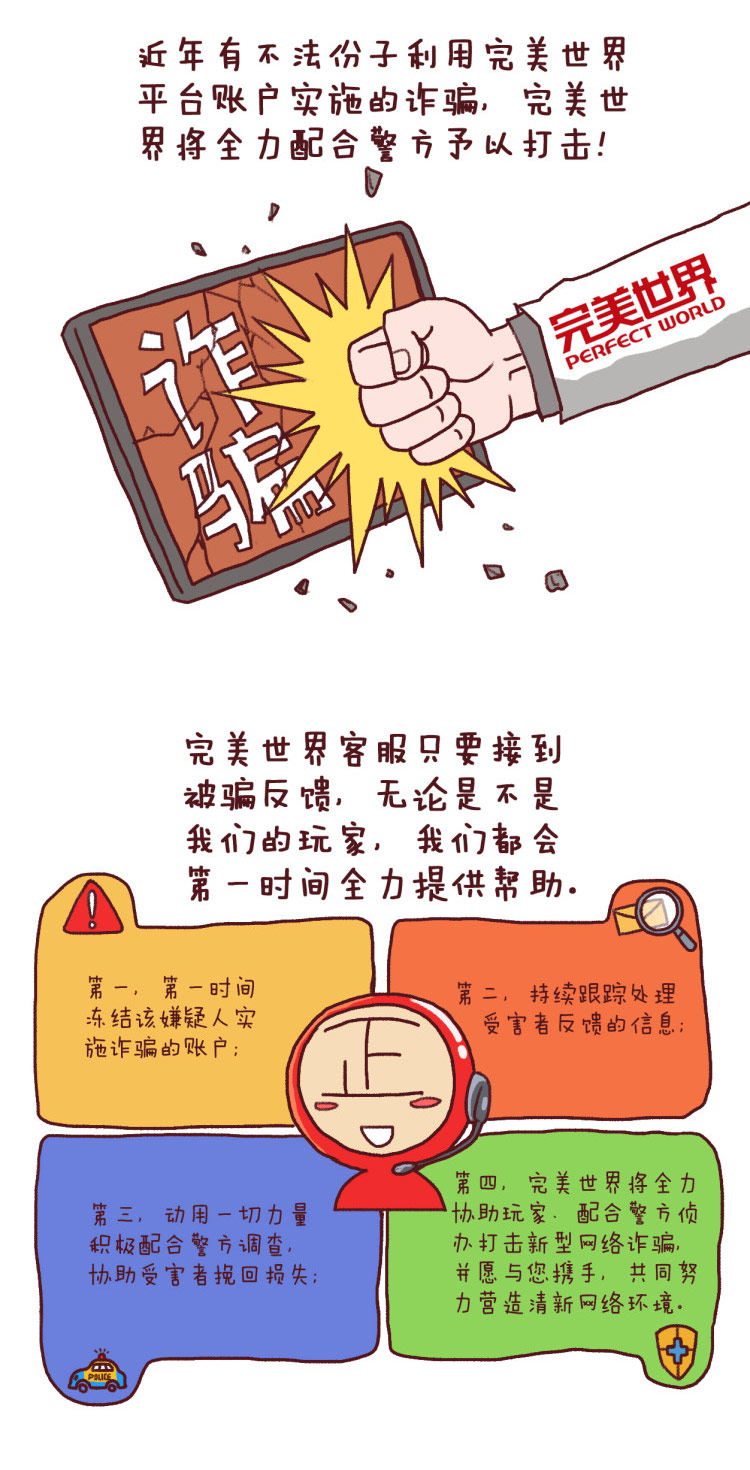 第一条 完美世界客服只要接到受害者反馈遭遇了电信诈骗,无论是不是我们的玩家,我们第一时间都会全力提供帮助和建议;