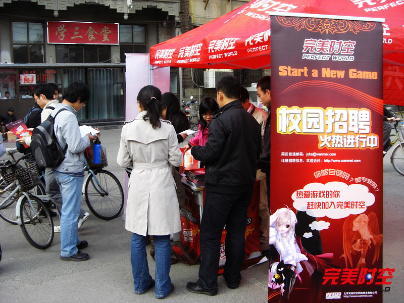 随着2008年逐渐进入尾声,各企业的校园招聘工作正逐渐进入高峰阶段。完美时空作为中国领先的网络游戏研发商和运营商之一,目前也正在积极补充新鲜血液。截止到目前,公司已成功在北京、天津及成都三地顺利展开了校园招聘工作,并在广大应届毕业生中获得了强烈反响。