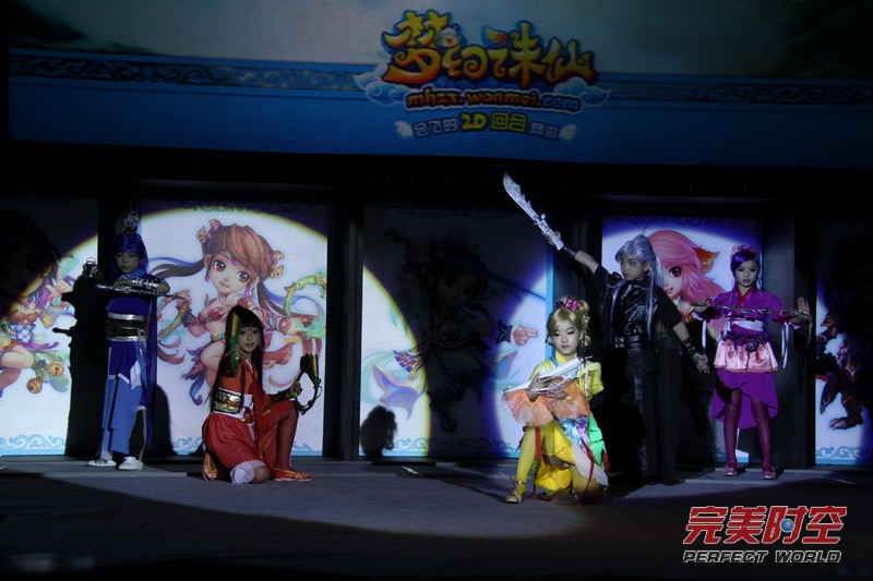 发布会上,完美时空将平时电视里面常见的威亚飞行特效,整体搬运到活动现场。以《梦幻诛仙》Cosplay形象出现的两位演员飞舞于天际,在空中进行演绎了现实版的 “飞翔!在新的回合”,让现场的来宾为之拍手叫绝。而随后借助现场营造出的美轮美奂的游戏布景,同名高清大片《梦幻诛仙》点映则充分的展示了 “飞翔”的世界,由内地古装剧王子胡歌饰演的“陈御风”、新一代四小花旦之首的唐嫣饰演的“花弄影”、演技精湛的双面伊人刘诗诗饰演的“柳潇潇”、孤傲冷酷目光坚定的袁弘饰演的“七杀”、古灵精怪的小佳人郭晓婷饰演的“琉璃”之间的爱恨情仇都让现场的观众如痴如醉。