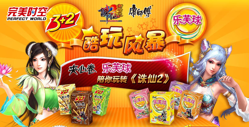康师傅旗下的3+2夹心卷、乐芙球产品上市以来一直广受年轻朋友的喜爱,其多样的口味和缤纷的包装更是为消费者提供了更多的选择。康师傅3+2在塑造年轻、活力、创新的品牌形象上是成功的典范,这也是促成双方合作的主要原因。活动期间,《诛仙2》炫酷的游戏人物形象将登上3+2夹心卷和乐芙球的包装,康师傅将把3+2夹心卷、乐芙球作为游戏物品融入到《诛仙2》中,在游戏过程中带给玩家愉悦的体验。