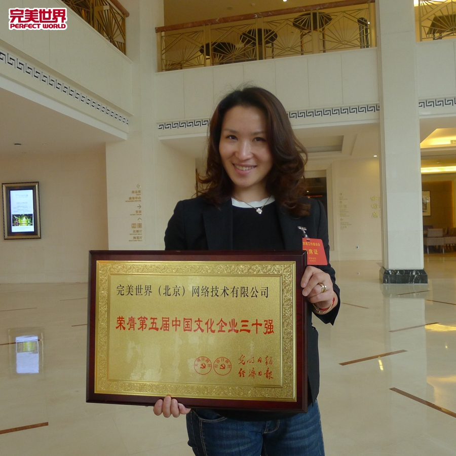 完美世界在继2011年和2012年后,再次入列。完美世界副总裁兼官方发言人王雨蕴女士代表完美世界到场,并接受了财政部部长助理余蔚平的颁奖。