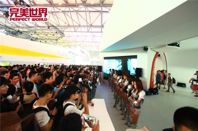 完美世界展馆前汇聚海量玩家