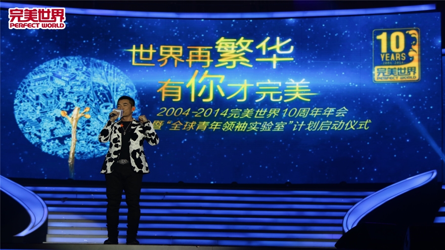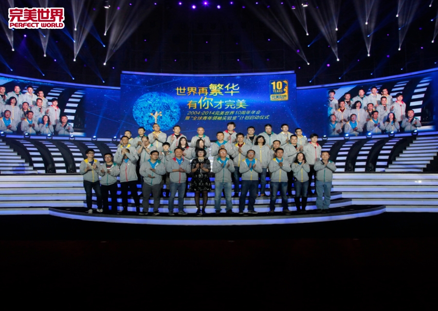 2015年2月8日晚,“世界再繁华,有你才完美”2004-2014完美世界十周年年会暨“全球青年领袖实验室”计划启动仪式于水立方国家游泳中心隆重举办。年会现场,完美世界三千多名员工、一百多家媒体、百余名行业精英,以及与完美世界曾合作过的娱乐明星,齐聚一堂,共同见证完美世界成立十周年的重要时刻。