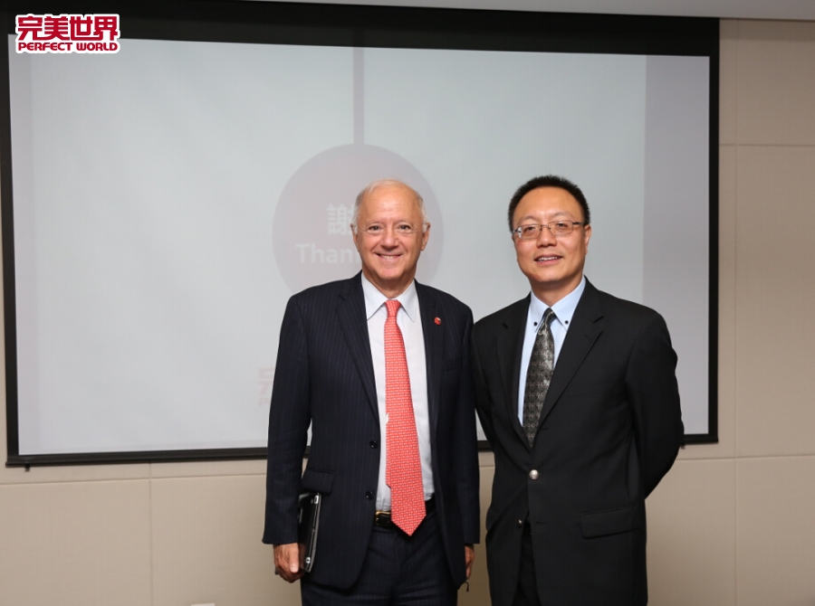 美中关系全国委员会会长斯蒂芬·A·欧伦斯(左)与完美世界CEO萧泓博士(右)会谈