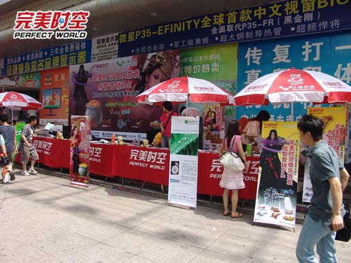 5月31日,本站活动最后一个环节卖场实地营销于武汉南极电脑城进行。完美时空为灾区奉献爱心为主题的互动活动受到了路人的极大支持和响应。参加实地营销的同学也以无比高涨的热情,用实际行动表达着对灾区人民的支持。