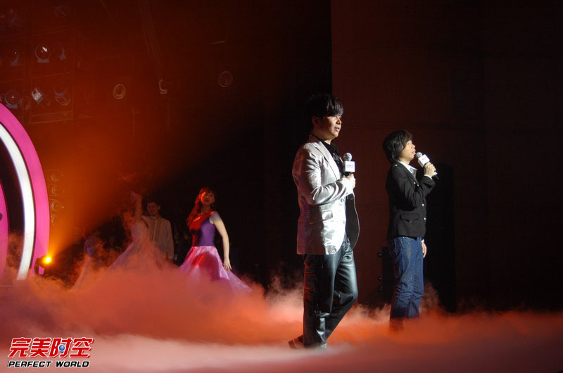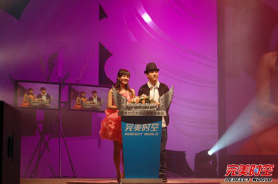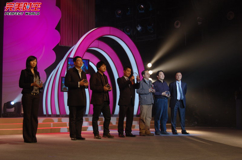 典礼进入“完美仙境”篇章,完美时空首席形象推广大使水木年华登台颁发了“完美最佳合作伙伴”、“完美最佳合作网吧”等奖项,一曲游戏同名主题曲《完美世界》掀起了现场的阵阵欢呼。两项玩家大奖也随即被开启。