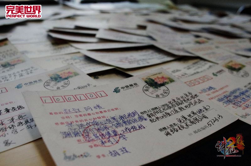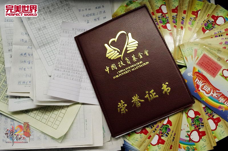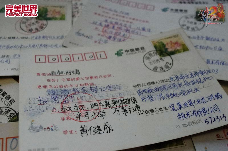 《诛仙2》首届国际跨服PK赛总决赛结束后,中国赛区亚军“叱咤☆风云”和季军“☆②零①②☆”将他们获得的奖金全额捐献给中国扶贫基金会。近日,《诛仙2》收到了来自中国扶贫基金会转寄的一个厚重包裹,这是数百封来自希望工程小学的孩子们亲手写的感谢信。