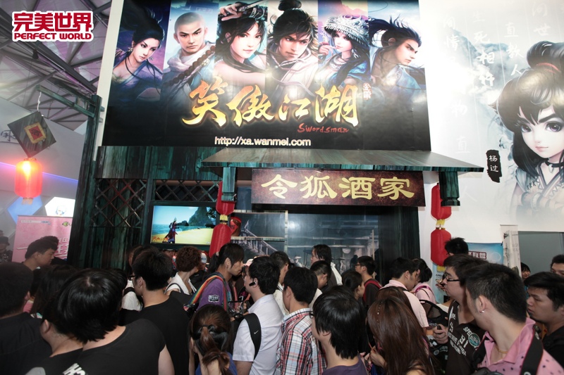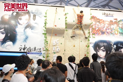 在本届ChinaJoy中,完美世界旗下《射雕英雄传》、《笑傲江湖》、《神雕侠侣》、《圣斗士星矢online》、《无冬之夜OL》、《火炬之光Ⅱ》等六款新作收到了媒体的密切关注和玩家的热切好评。展台上、试玩区、观影厅等,所有有新游戏元素的地方都是人气的爆发点。在完美展区的所有活动里,与新游戏相关的活动项目更是人气爆棚。《神雕侠侣》的攀岩活动让众多玩家大呼过瘾。试玩区,包括《火炬之光Ⅱ》、《无冬之夜OL》在内的游戏试玩备受玩家青睐。作为礼品发放处的笑傲酒馆因造型新奇也受到了玩家的热切关注,很多玩家纷纷合影留念。笑傲酒馆和《无冬之夜OL》骨龙、诛小仙拍照墙被称作是场馆中人气最高的拍照场所之一。二楼的360°全息雅典娜和观影厅让喜欢圣斗士的玩家朋友们兴奋不已,久久不愿离去,这也让大家对《圣斗士星矢online》持有了更高的关注度。