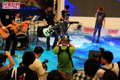 游戏与摇滚,战斗与律动,混搭的时尚效果必定让完美展台迅速升温。青空乐团有近十年的丰富的舞台表演经历,乐团多次受邀和参与高规格的演出及比赛,在流行摇滚圈不断积累人气,对音乐的激情和执着令人感动,这也是完美世界连续三年邀请青空乐团助阵ChinaJoy的重要原因。