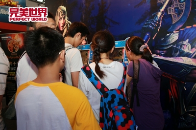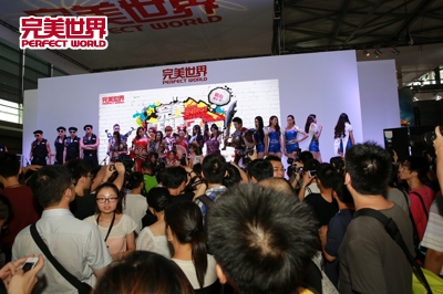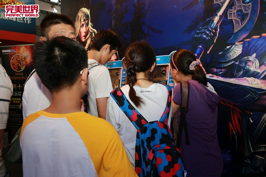 除此之外,完美世界带来的《笑傲江湖ol》,人气新品《Dota2》、《无冬online》《射雕zero》、《圣王》,以及备受关注的网页产品《TOUCH》、《战三国》、《完美世界楚汉传奇》和移动游戏《神雕侠侣》、《这就是战争》、《MT英雄传》、《楚汉传奇》、《冰火世纪》等游戏大作,在现场引来了众多玩家围观,其所设试玩区更是持续爆满。