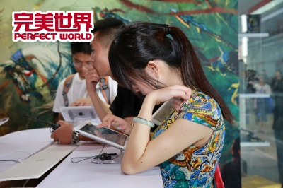 其中,《笑傲江湖OL》、《无冬online》、《DOTA2》、《射雕英雄传》、《圣王》,和《TOUCH》、《战.三国》、《完美世界楚汉传奇》等页游,以及《神雕侠侣》、《这就是战争》、《MT英雄传》、《楚汉传奇》、《冰火世纪》等移动端游戏的亮相,吸引了众多玩家前往。而其试玩区的准备,也无疑成为了完美世界展区的最大热点。