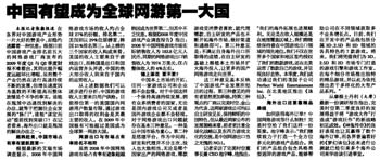 虽然2008年中国网络游戏市场占有率有迹象超越韩国成为世界第二,但其中不乏忧患。根据《2008年度中国游戏产业调查报告》指出:2008年中国网络游戏市场实际销售收入为183.8亿元人民币,同期的网络游戏出口销售收入为7074万美元,仅占整体收入的4%左右。