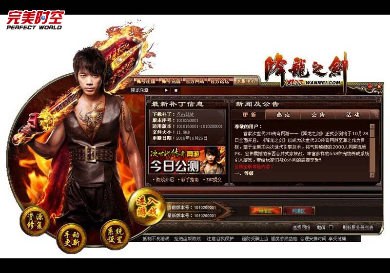 2010年10月28日,完美时空旗下首款2D即时网游《降龙之剑》震撼公测!