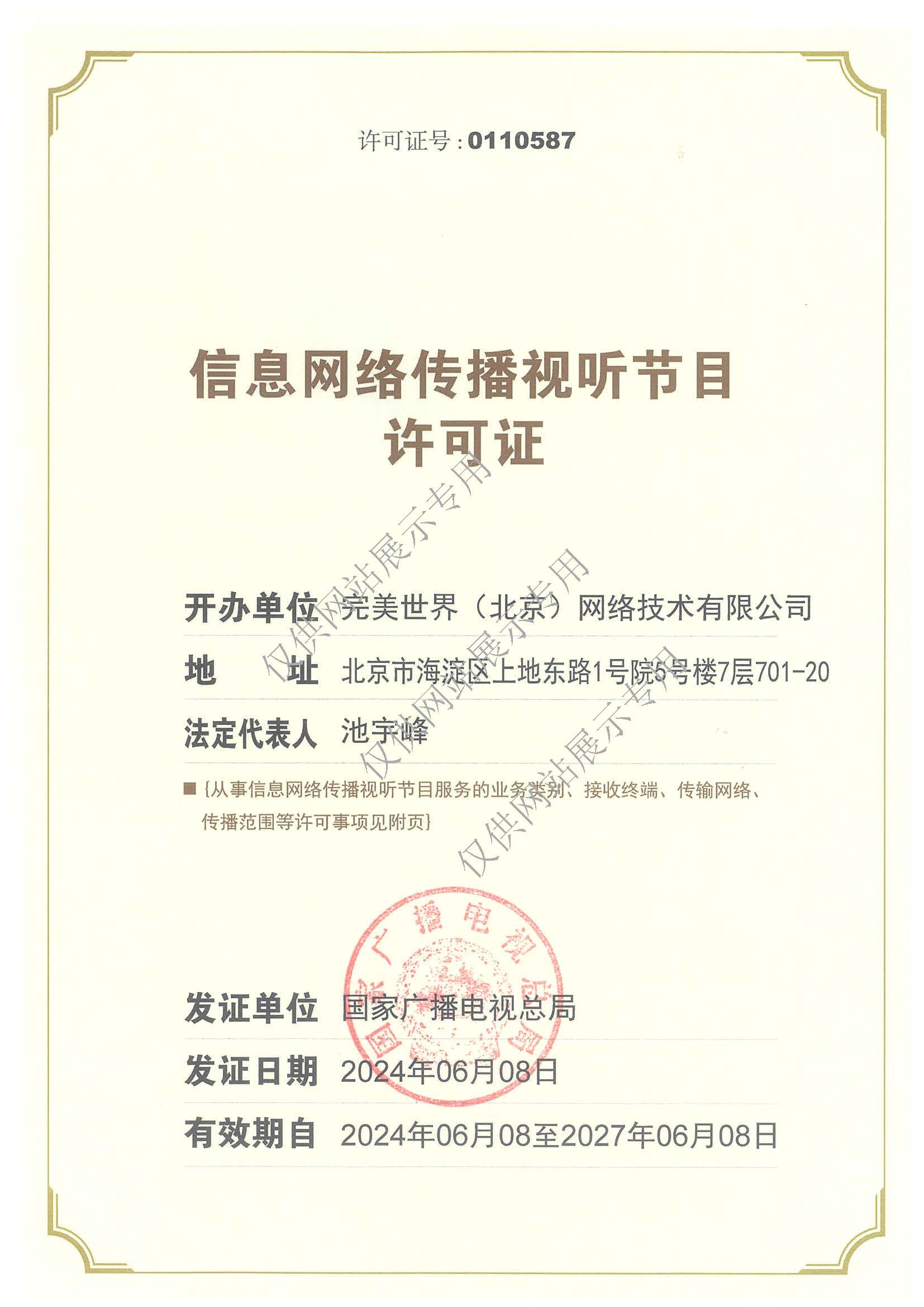 信息网络传播视听节目许可证 0110587号