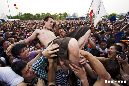 虽然这只是迷笛音乐节的第一天,但上海本地老牌乐队的精彩表现撑起大半边天,乐迷们的热情正如同上海飙升的气温,一路高涨。