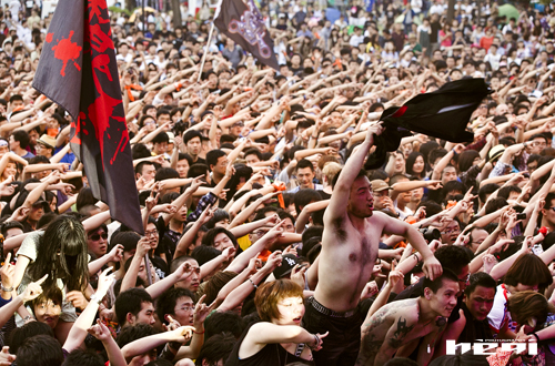 傍晚时分夜叉登场,随着夜叉的金属之声狂欢真正的开始了,上海笛迷爆发了最为壮观的POGO场面,无数的摇滚乐迷激情的碰撞在一起。而曾为Megadeth及Metallica担任暖场嘉宾的巴西金属大牌Hibria乐队,也在随后让大家领略到重金属摇滚的风采,主唱高亢嘹亮的嗓音、编织的密不透风的吉他Riff和鼓,给我们带来了一场世界顶级金属乐的演出盛宴。