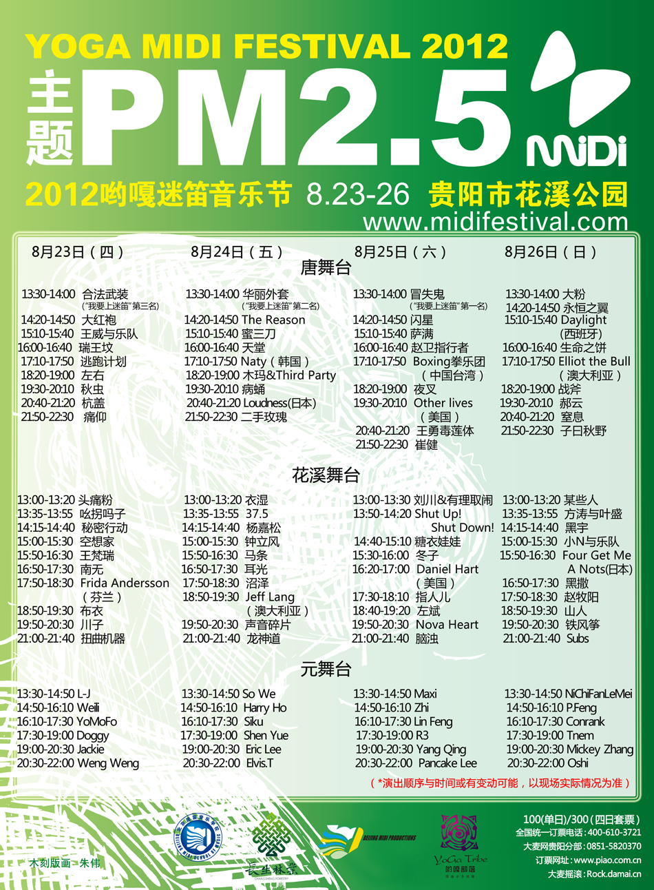 Yoga Midi Festival 2012·Line Up Schedule(TANG /HUAXI/YUAN Stage)