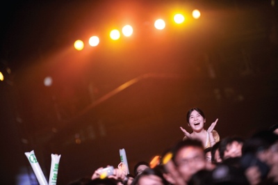 虽然是首次来长演出,高峰&G-ELEVEN可丝毫不怯场。主唱高峰戴着大大的黑框眼镜,神情颇似日本卡通里的经典形象柯南,有乐迷形容:“他就像是‘摇滚版’的柯南。”这位“摇滚柯南”调动场下气氛的能力也毋庸置疑:“长沙的姑娘你们在哪里?”场下的女观众大声回应,“在这里!”见到如此配合的观众,高峰大笑一声,“好!接下来我要唱一首歌献给场下的女观众!”女观众又是一片沸腾。献给女观众的歌一唱完,高峰又说要送一首歌给男观众,结果男观众的回应明显没有女观众积极,“怎么男观众那么难为情,果然还是湘妹子厉害!那就送一首《多余的爱》给男观众算啦!”现场一阵爆笑,几个刚才还默不吭声的男歌迷立马躁动了,“我们在这里!我们可一点也不多余啊!