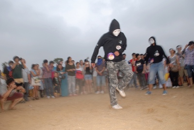 DUDE乐队的成员来自中国、美国、法国和波兰,四个不同国家的成员组成了一支“多元化”的乐队,而他们的音乐风格也十分多元化。9日,他们就把《不怕不怕》《爱情买卖》《伤不起》等神曲改编成了摇滚版。加入摇滚元素的神曲,一下子就激活了现场观众的摇滚细胞,全场乐迷都在大合唱。乐队主唱Cody演唱时,也不忘大秀搞怪能力,时而双目圆瞪,像个怒目金刚;时而又脸露滑稽表情,仿佛憨豆附身。唱到《爱情买卖》时,Cody忽然脱下自己的背心,朝着自己胸口狠狠地捶击几下。台下的观众笑着说,“这个爆发的‘憨豆先生’,神曲唱得真给力!”