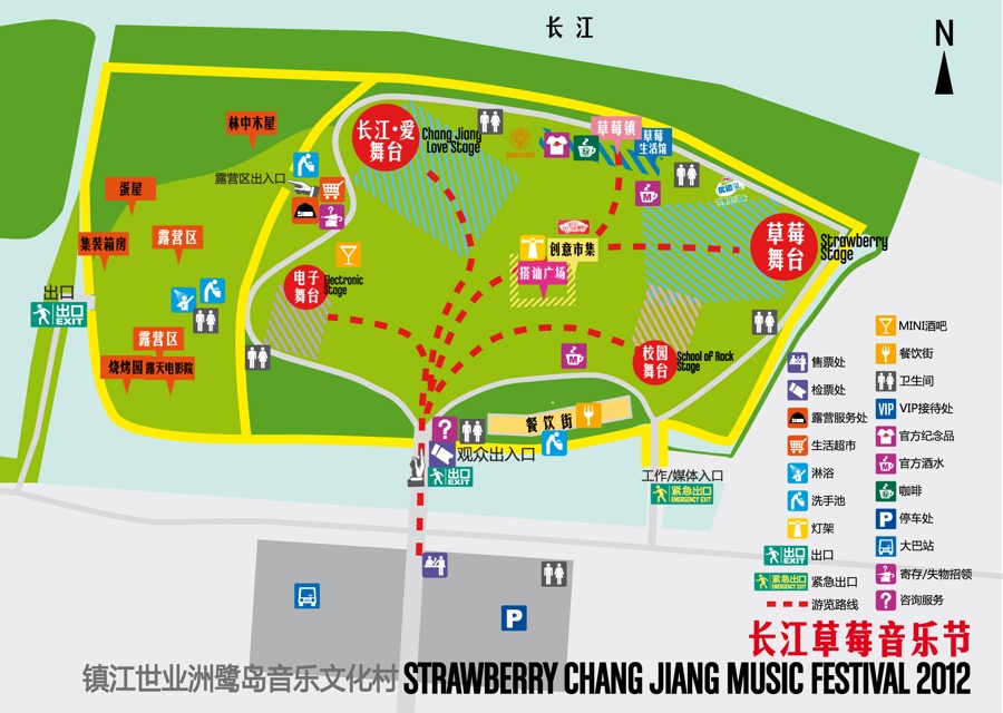 天气:长江草莓音乐节场地位于江苏省镇江市世业洲鹭岛音乐文化村,场地北面既长江,温差比较大,中午适合穿半袖早晚需要穿厚衣服(如毛衣皮衣等),如果下雨感觉会更冷一些,请大家多带衣物,以免着凉感冒。
