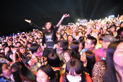 入夜,重塑雕像的权利和北京朋克反光镜同时唱响两大舞台,重塑的后朋范儿电子让摇滚青年们重塑世界观,反光镜十年的中坚态度从未改变,朋克精神再镇江再次光耀。苏打绿压轴出场,去年开场长江草莓,今年最后出场,乐迷一路支持到底,还未上场台下便早已人满为患,主唱感冒未愈坚持出场声音完美依旧,台上台下互动不断,长江草莓第三日在苏打绿浪漫独立的声音中完美收官。