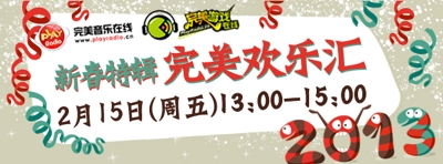 蛇年春节将至,大街小巷开始张灯结彩,年味越来越浓,人们的心情也越来越喜悦。春节期间,完美音乐在线为玩家精心准备了惊喜内容。2013年2月15日(大年初六)13:00-15:00,完美世界音乐在线携手完美游戏在线,将为大家奉上新春特别节目《完美欢乐汇》,并带来诸多新春好礼,为玩家的假期生活增添更多的惊喜和快乐!