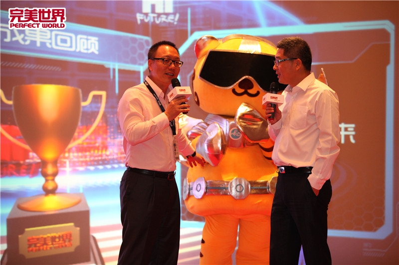 下午2点整,完美世界媒体见面会正式开始,央视名嘴刘建宏担任本次见面会主持人,在台上与完美世界人气超高的小虎进行了快乐的虚拟互动,轻松的开场模式立即刷新了在座媒体的眼球。身为知名体育主持人的刘建宏与完美世界CEO萧泓就体育与游戏的关系展开讨论,两位各自领域的权威专家都认为,体育来自游戏,而游戏本身也是体育的重要组成部分,两者未来的融合值得期待。随后,萧泓对于未来游戏产业的发展大方向,以及完美世界面对整个游戏格局做出的努力和调整,进行了详尽的诠释。