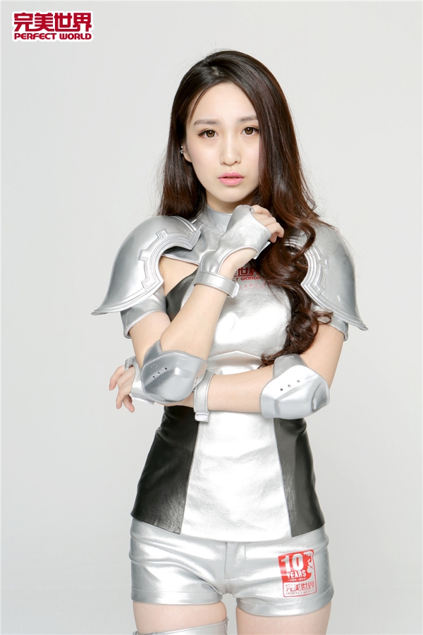 Hi,Girl。今年完美世界ShowGirl定妆照的清新出炉,完美世界ShowGirl参加本届ChinaJoy的服装也抢先曝光!完美世界ShowGirl服装整体贴身精致,使用未来感十足的亮银白色和黑色的搭配,配及胸口处完美世界Logo及左腿完美十周年的Logo。肩膀,手肘和手腕处的配以肩甲、肘甲和手套,即未来科幻又运动阳光,充分体现完美世界参展本届ChinaJoy的主题,又能彰显Showgirl青春健康活力无限的形象。