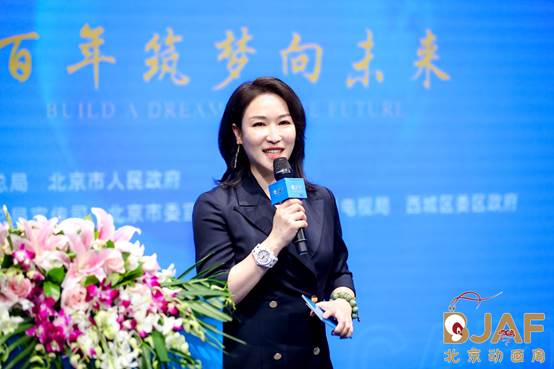 (图为王雨蕴主持首届北京动画周中国动画百年发展论坛并发表演讲)